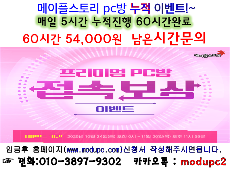 [메이플스토리] 11월 21일 이후 pc방 60시간 진행 // 15시간 마감
